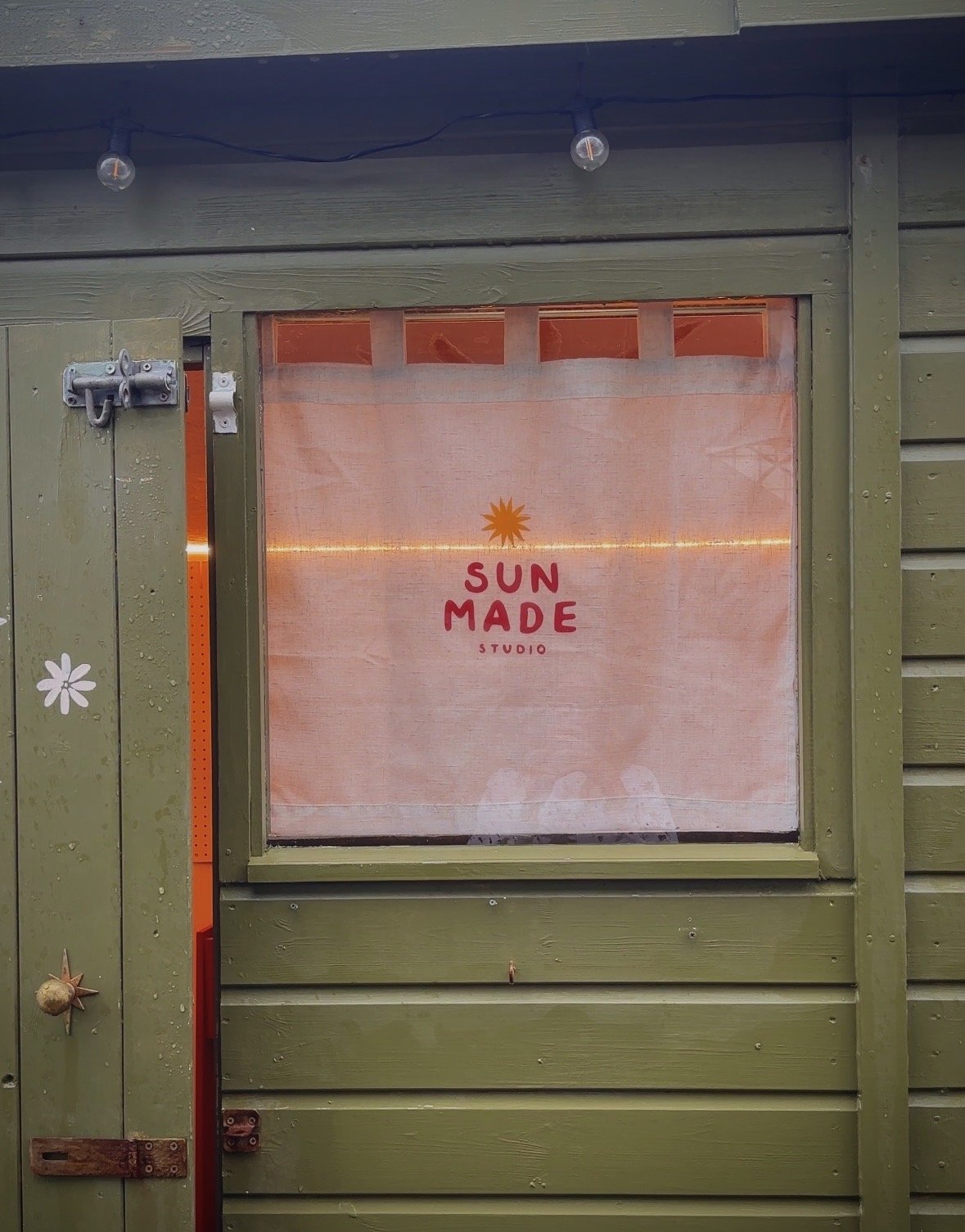 You can find the Sun Made Studio shop opposite Porthleven Harbour Head green, at the back of the Shipyard Market